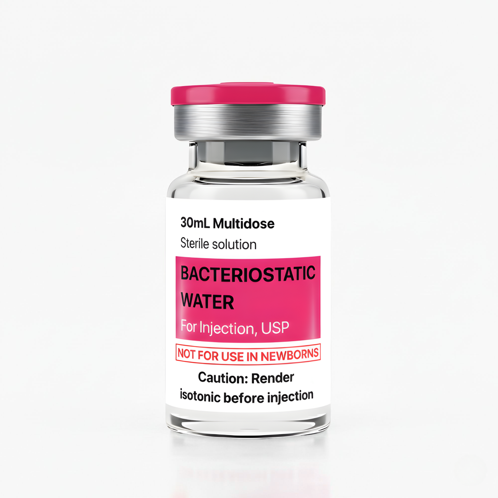 Woda bakteriostatyczna (BAC Water) to sterylny, apirogenny roztwór wody zawierający 0,9% alkoholu benzylowego, który działa jako środek konserwujący, hamując wzrost bakterii. Jest powszechnie stosowany do rozcieńczania lub rozpuszczania peptydów i innych leków przed wstrzyknięciem. Ze względu na zawartość alkoholu benzylowego, wodę BAC można bezpiecznie stosować wielokrotnie z tej samej fiolki (w ciągu 28 dni od otwarcia), co czyni ją wygodnym i higienicznym wyborem do zastosowań badawczych i laboratoryjnych.
